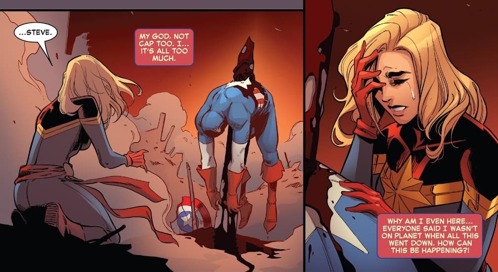 La magia es un arte que para ella había sido ajeno, pero al conocer el destino oscuro que le depara al mundo, en donde millones de personas pierden la vida incluyendo a sus compañeros Avengers, Carol debe de conquistar esa debilidad y aprender hechicería cueste lo que cueste.