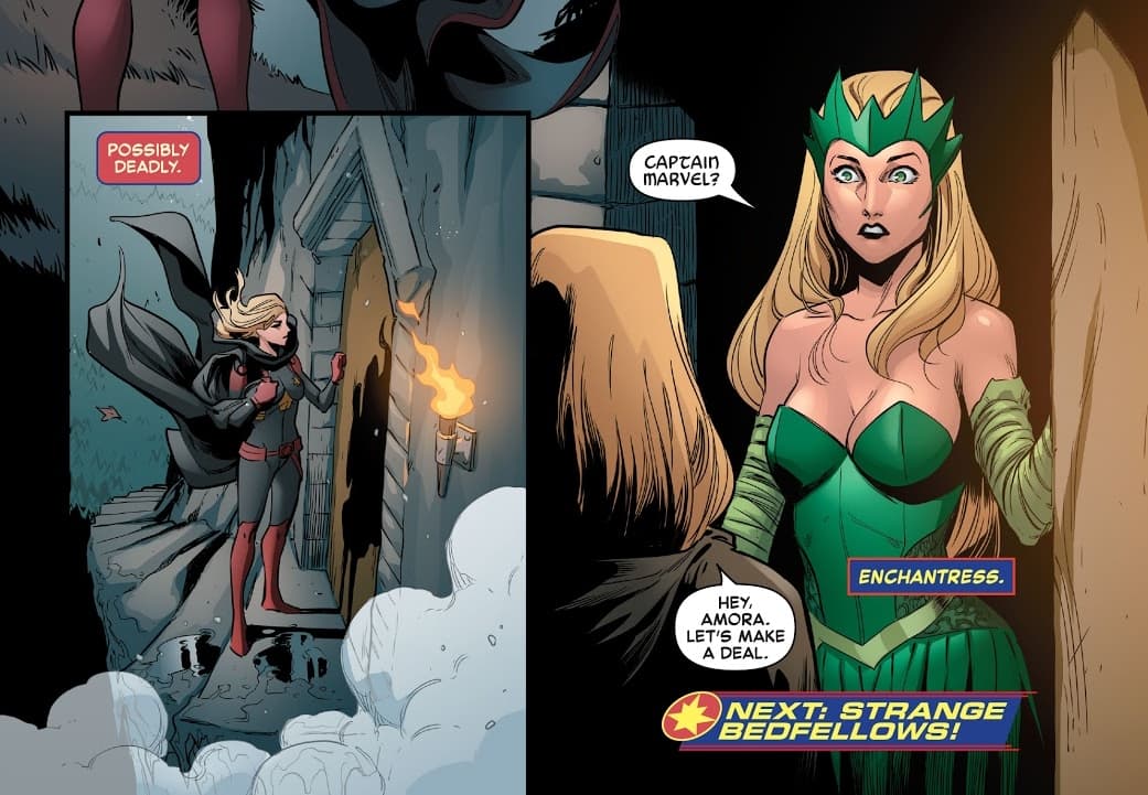 Al final, a Capitana Marvel no le queda otra alternativa y acude con la hechicera menos esperada, la madre de Ove, Enchantress.
