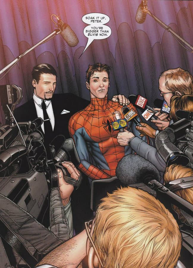 En el cómic es claro que Peter Parker se encuentra confundido. Aún siendo adulto y estando casado no sabe a qué grupo pertenece realmente. ¿Qué es lo que busca? Tony Stark aprovecha la situación y le obsequia un traje diseñado con tecnología muy similar a la que tiene la armadura de Iron Man. Parker se ve envuelto en la decisión de elegir un bando y se va con el de Stark. Lo radical es ver que estando en este equipo se quita la máscara frente a la prensa; un acto de buena voluntad hacia el gobierno y hacia el mundo, mostrando que pueden recobrar la fe y confianza en los superhéroes. Todo cambia cuando ve las medidas extremas que han tomado Stark, Pym y Richards. Ahí es cuando se mete al bando del Capitán América.