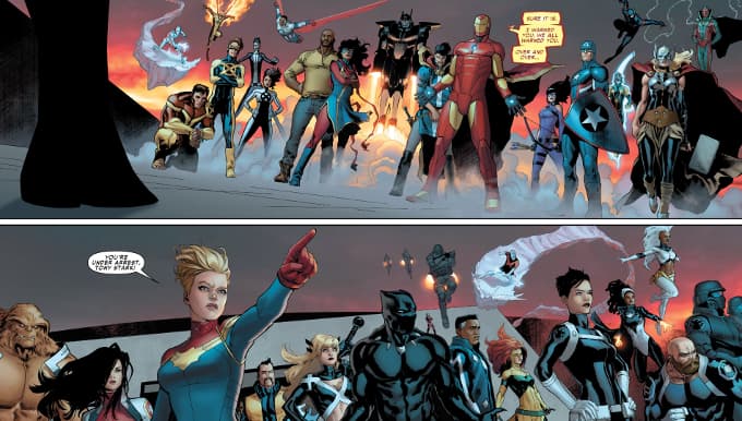 Esto fue lo que Tony intentó tratar de comunicar a los líderes más experientes de cada sector, en una reunión secreta (incluida Captain Marvel). Obviamente, Carol no lo tomó bien y, desde ese momento, Tony y aquellos que concordaron con él decidieron ponerse en acción.