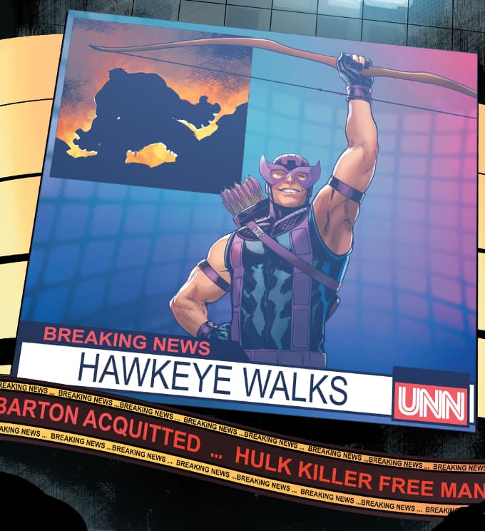 Para la sorpresa de todos, Clint Barton ( Hawkeye), responsable de la muerte de Bruce Banner, no fue condenado por su crimen; todo lo contrario, tras su juicio y posterior liberación, Hawkeye fue ponderado como héroe nacional tras eliminar la amenaza más grande en la Tierra.