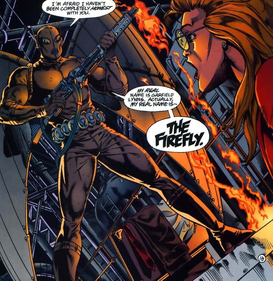 Uno de los pirómanos más enfermos y peligrosos que haya azotado a Gotham es Garfield Lynns alias Luciernaga, quien disfruta de quemar todo a su paso, ya sean cosas, animales o personas.