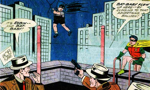 Dejando lo mejor para el final. Esta historia plantea cuando Batman sufre por un rayo encogedor que deja sus capacidades y mente intactas, pero lo vuelve físicamente como un bebé. Lo interesante es ver que Robin puede cuidar de Batman (y no al revés, como siempre suele pasar). Batman tiene sus momentos de pena, pero este puede llevarse el galardón.