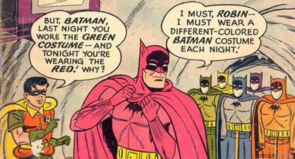 Robin es herido notoriamente y su alter ego, Dick Grayson, se vería con la misma lesión. En un intento porque las personas no se percataran de que Robin y Dick Grayson son la misma persona, Batman planea una serie de disfraces muy coloridos para atraer la atención hacia él y no hacia su compañero. Con verdes, azules y rojos, terminando en un traje de arcoíris, Batman es un superhéroe multicolor que puede patear traseros sin importar lo ridículo que luzca. Claro que es mejor cuando trae puestos los colores originales y más sombríos. Detective Comics #241 es un ejemplar muy especial.