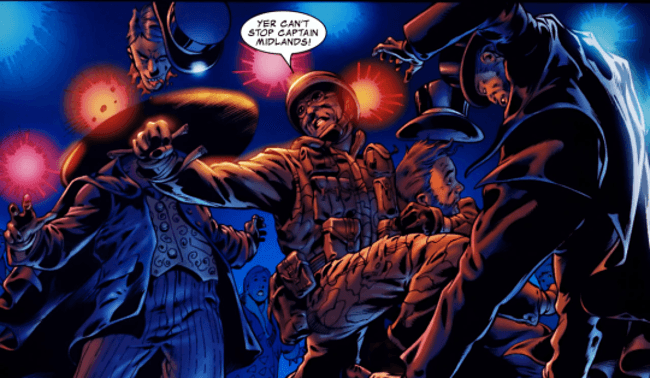 Sid Ridley, es inglés y tiene la misma edad que Captain America. Al igual que el héroe americano participó en el programa del súper-soldado en el cual obtuvo sus poderes para luchar en la Segunda Guerra Mundial. A diferencia de Steve, Ridley no estuvo congelado en el tiempo, por eso su apariencia es de un veterano. Sus habilidades son parecidas a las de Steve pero cuenta con más de 40 años en experiencia de combate. Sin embargo, al paso de los años ha perdido la fuerza de voluntad.