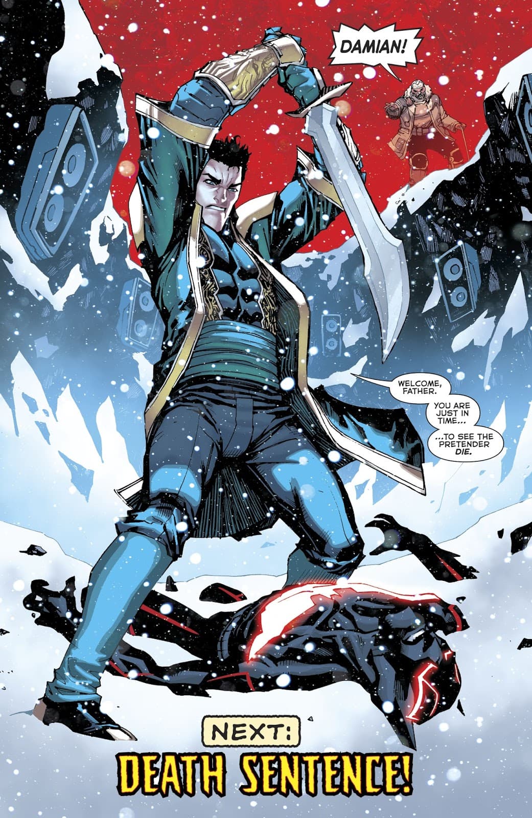 Al finalizar el issue —como era de esperarse—, Bruce irrumpe en escena, tratando que Damian cambie de opinión; y aunque es extremadamente probable que lo haga, este cómic sentencia el futuro de Bruce, por lo menos para uno de sus hijos.