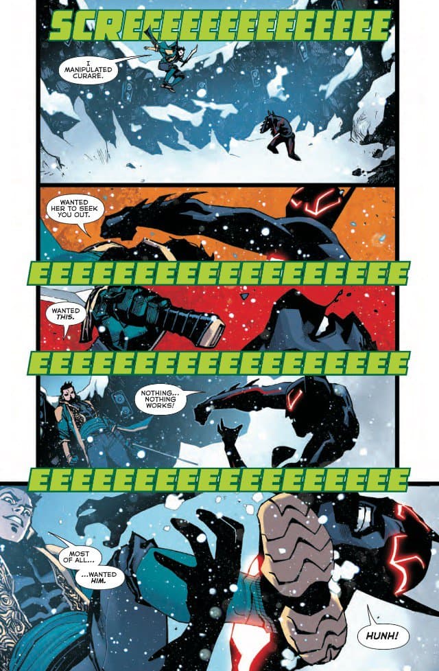 La superioridad técnica de Damian es absoluta. El nieto de Ra's —sin ningún tipo de armadura o beneficio tecnológico— barre el piso con el nuevo Batman, demostrando su linaje de guerrero y asesino. Terry cae rendido, esperando por el golpe final; lo que, obviamente, nos llena de incertidumbre. ¿Morirá el legado de Bruce Wayne junto con su sucesor? ¿Será la propia sangre de Batman la que termine con su sueño?