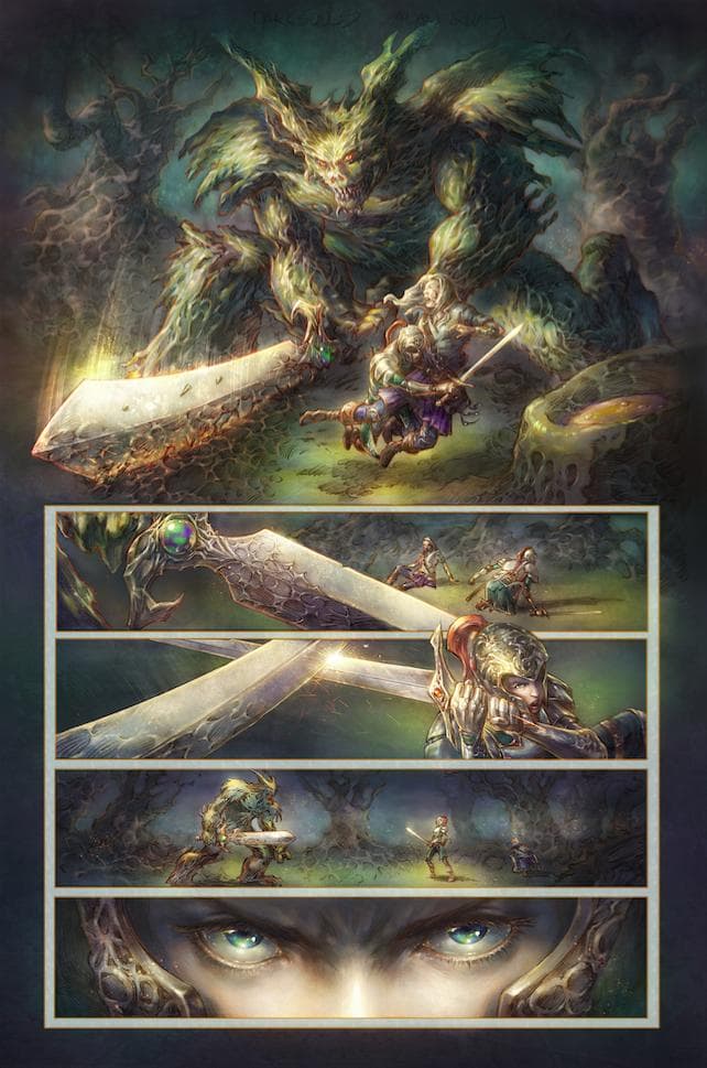 Por el lado de las ilustraciones, el encargado de realizar el trabajo fue Alan Quah ( Orphan Black, Godzilla: Awakening). La franquicia Dark Souls es poseedora de una clara propuesta estética y visual: melodramática, angustiosa, cargada de grises y escenarios medievales habitados casi exclusivamente por criaturas. Por lo tanto, no es de menos interés descubrir qué elecciones tomó el artista a la hora de pasar este universo ya fuertemente establecido a las páginas.