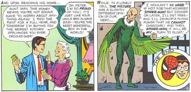 Caso contrario a otros superhéroes, Spidey no contaba con una fortuna que respaldara económicamente su doble vida como justiciero; es más, en sus primeros años como Spider-Man, no la pasó muy bien. Luego de que su tío Ben muriese, quedó a cargo de la casa, viéndose en la obligación de colaborar y sustentar su hogar (no olvidemos que su Tía May, ya era una señora entrada en años).