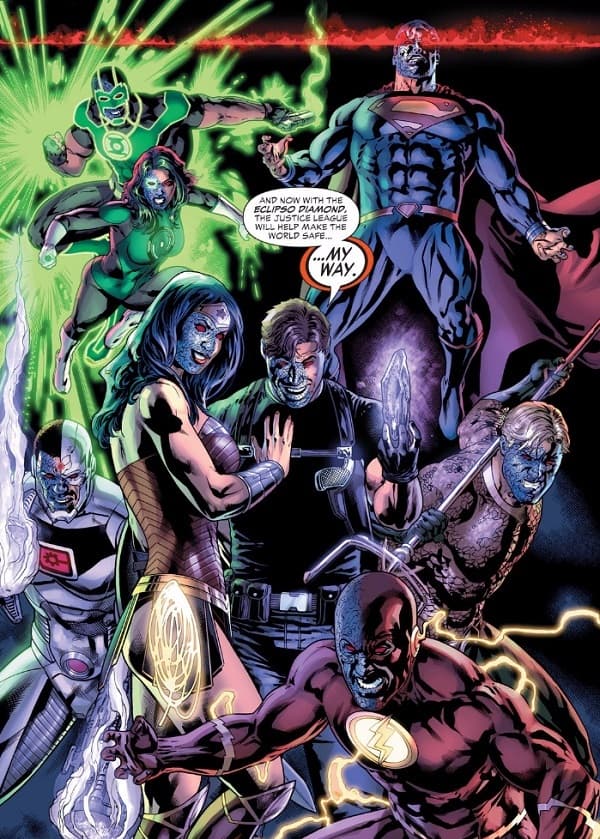 En el actual evento Justice League vs. Suicide Squad, Maxwell Lord, quien apuntaba en un principio a ser el principal villano, intentó controlar y hacerse con los poderes de Eclipso. La cosa no salió como esperaba. El poder del villano está ahora desatado y en la cresta más grande de la ola. Fue capaz de poseer a Maxwell, a (casi) toda la Liga de la Justicia y a la mitad de Estados Unidos. El seguramente oscuro final de Justice League vs. Suicide Squad se acerca y estamos atentos a cuales son los planes del malévolo Eclipso.