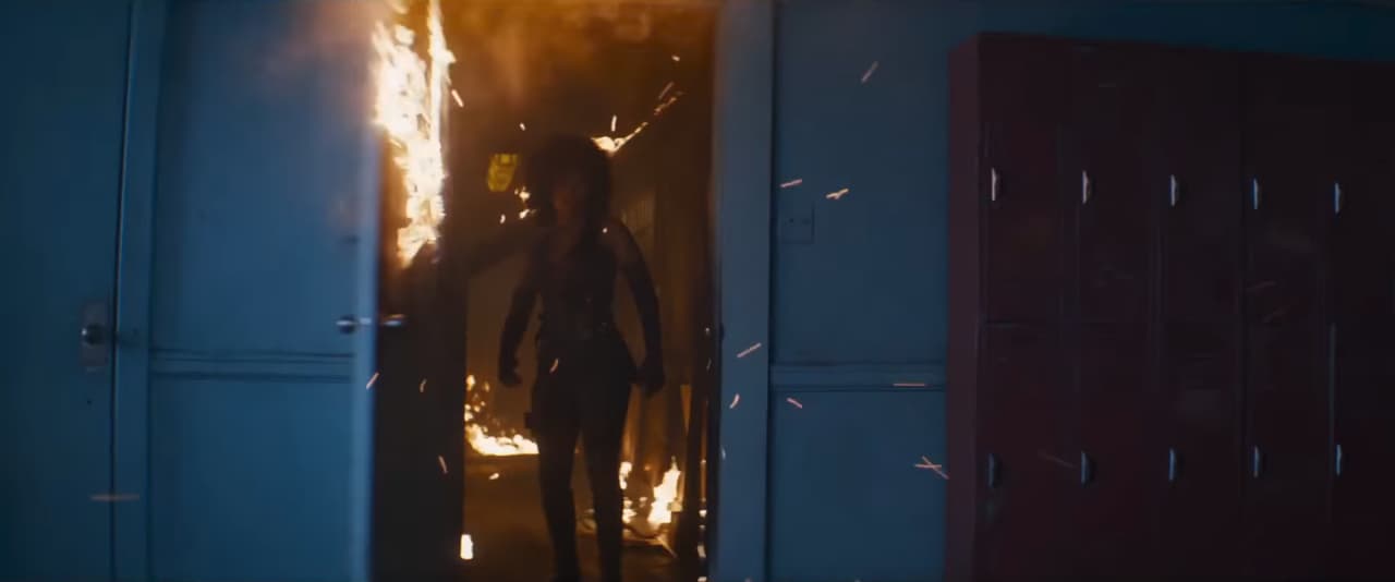 Si bien ya sabíamos que Zazie Beetz sería la encargada de interpretar a Domino e incluso ya la habíamos visto en el póster y algunas imágenes promocionales del personaje, el teaser nos permite verla en acción por primera vez a través de una secuencia muy fugaz en la cual podemos verla atravesando una puerta en llamas… ¿Será el mismo lugar que el joven mutante estaba incendiando?