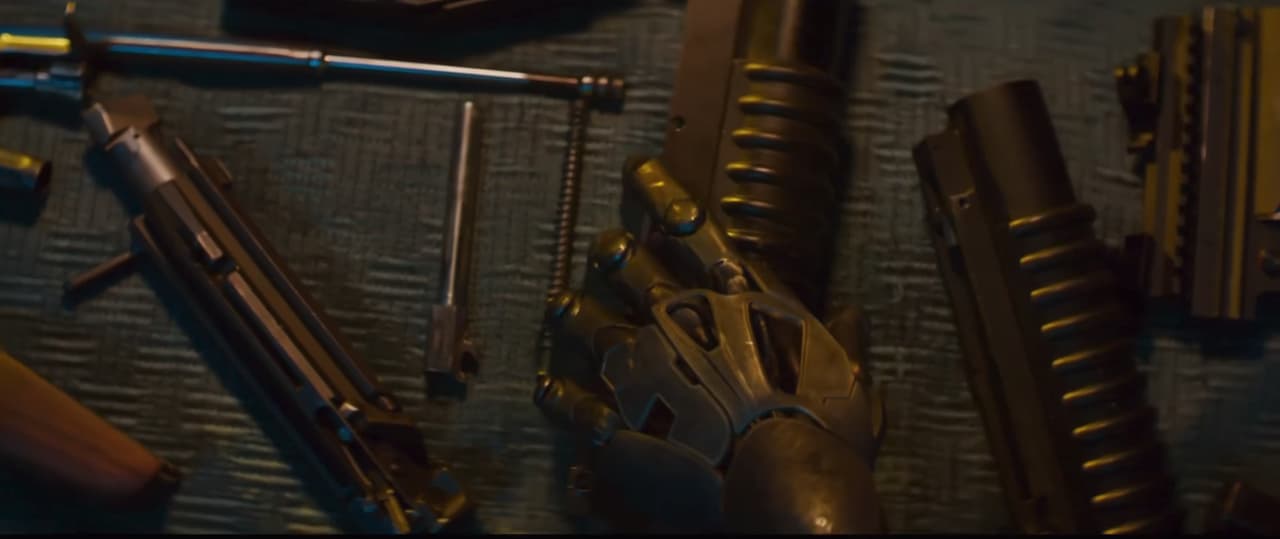 Al final del trailer podemos ver una mano robótica encima de un puñado de armas de fuego, y en caso de que alguien aún tenga dudas al respecto, sí, se trata de la mano de Cable.