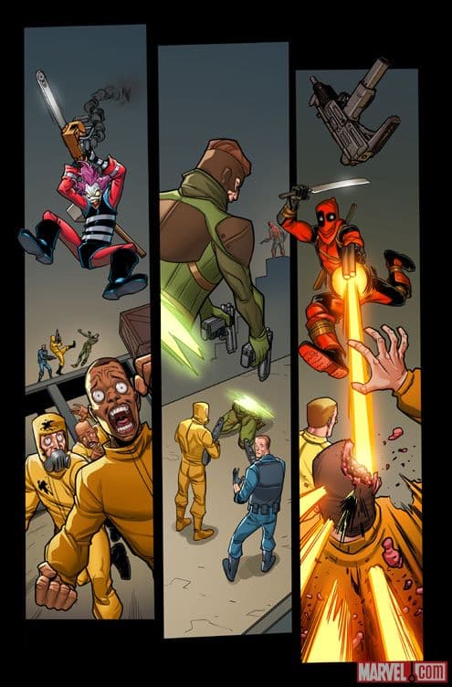 Y por si este conglomerado de caras bonitas no fuera suficiente, todavía nos queda por repasar algunos de los villanos con los que cruzarán sus caminos (sí, sí: los chicos buenos son los que ya nombramos, increíblemente). En realidad, hasta ahora han sido revelados menos nombres de los que han sido prometidos; por eso, en la lista de enemigos de Deadpool y The Mercs For Money solamente podemos confirmar a Lord Deathstrike, Taskmaster, Crazy Gang y el controvertido y esquizoide Evil Deadpool. Pocos pero sólidos.