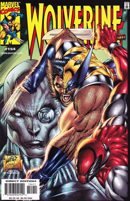 Aquí la respuesta con respecto al paradero de Cable. Un ejemplar después, se nota el claro "Wolverine" en el título y el nombre original tachado. La cara molesta de Logan es lo mejor. Trazos similares y sencillos, pero con la actitud muy explícita en ambos protagonistas.