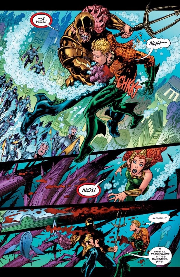 Las páginas de Aquaman a cargo de Dan Abnett, Scot Eaton y Philippe Briones son la perfecta mezcla entre Game of Thrones y House of Cards, y con el sorprendente final del issue #24, tenemos un poco para hablar.