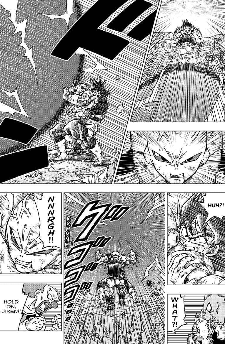 Tras el despertar del Migatte no Gokui Perfecto, Jiren es llevado a sus límites, tanto como Gokú, quien pierde el estado y se debe enfrentar a un Jiren herido, con la ayuda de Vegeta. Los Saiyan luchan con sus fuerzas combinadas, de la misma manera que entrenaron con Whis.