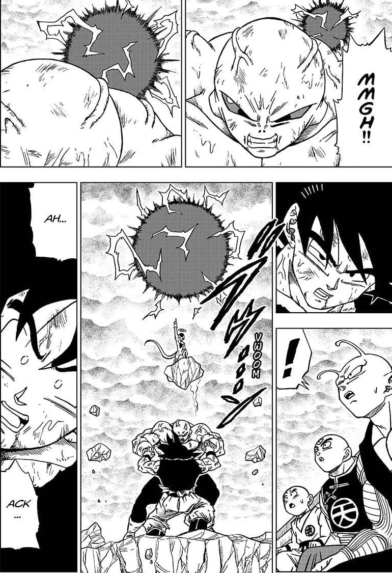 Arrojando una enorme bola de energía (Bola mortal) hacia Jiren, quien permanecía aprisionado por Gokú, lo desestabiliza al punto de dejar su torso desprotegido.