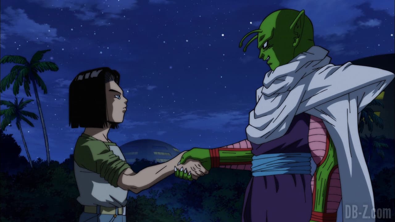 En una escena que confirma a Piccolo como uno de los personajes más carismáticos y mejor desarrollados desde el inicio de Dragon Ball, el namekusei se aproxima a Número 17 con lo que, a simple vista, parecen ser intenciones hostiles (ambos atravesaron momentos de enemistad que podrían haber creado un sentimiento de odio mutuo), pero, para sorpresa del androide —y nuestra— Piccolo le da la bienvenida expresándole que su colaboración en el torneo es motivo de gran alegría.