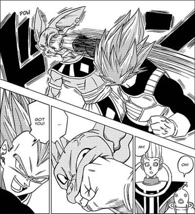 Ahora bien, ¿es la transformación de Super Saiyan Blue usada por Vegeta en esta pelea la misma que hemos visto durante toda la serie? Al parecer, la respuesta la encontramos en el manga, en la saga de Black (y posterior saga del Torneo de fuerza), cuando Gokú domina el Super Saiyan Blue de una manera jamás antes vista (y que Vegeta luego replicará porque «no hay nada que Kakarotto pueda hacer y él no»)...