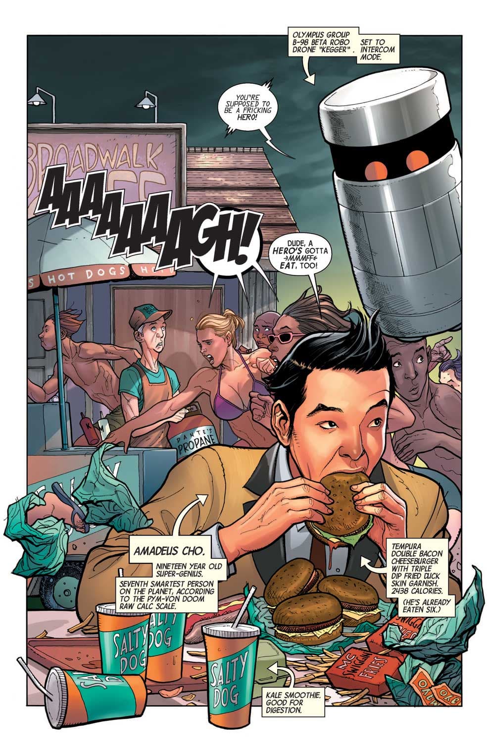 Ahora, con las repercusiones del anuncio ya asentadas, Amadeus se dispone a hacerse cargo de las aventuras de la serie The Totally Awesome Hulk desde su número 1. Detrás de este nuevo comienzo para el gigante esmeralda estarán los textos de Greg Pak y las ilustraciones del excelso Frank Cho. Gracias a ellos podremos ver cómo este Hulk (que posee la séptima mayor inteligencia del planeta a sus jóvenes 19 años) nos muestra poco a poco qué fue lo que sucedió para que sea él el actual poseedor del poder gamma.