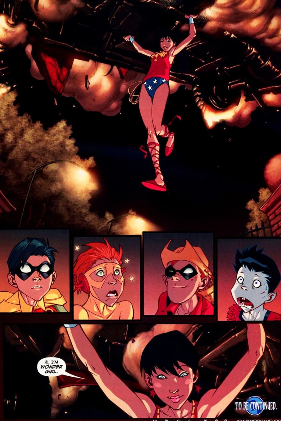 DC decide relanzar al equipo de Titans, formado por los Teen Titans originales ya adultos y con nuevas identidades. El argumento de la serie se basa en que los Teen Titans originales (liderados por Grayson como Robin, no Tim Drake) existieron hace años, pero fueron borrados de la memoria colectiva por las maquinaciones del malvado Mr. Twister. El pequeño problema es que uno de los miembros fundadores fue una Donna Troy adolescente, lo cual es absolutamente imposible si fue recientemente creada en Themyscira ya adulta. Es absolutamente incomprensible que DC cometa el error más ridículo de su historia con el mismo personaje dos veces. No resiste ningún tipo de análisis.