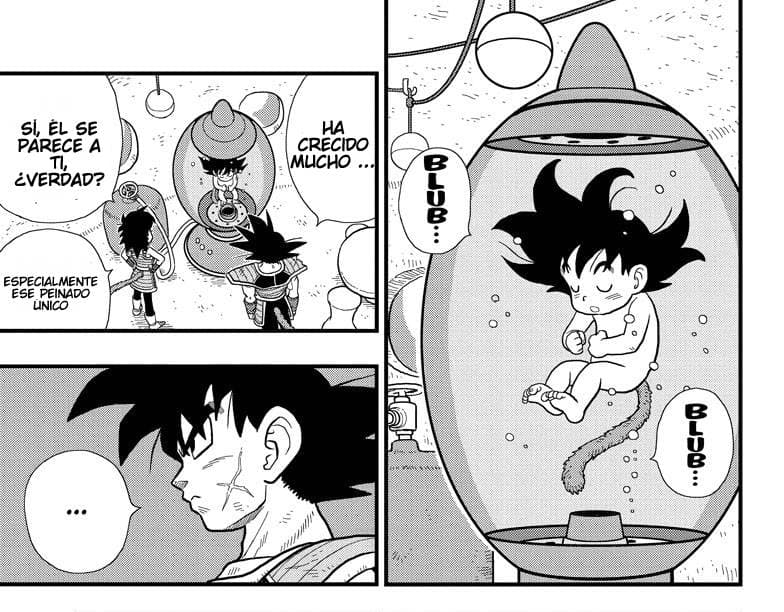 Además de ver en una viñeta al joven Raditz, también tuvimos un vistazo de Goku en su incubadora, justo en el momento en el que su padre lo nombra como Kakaroto.