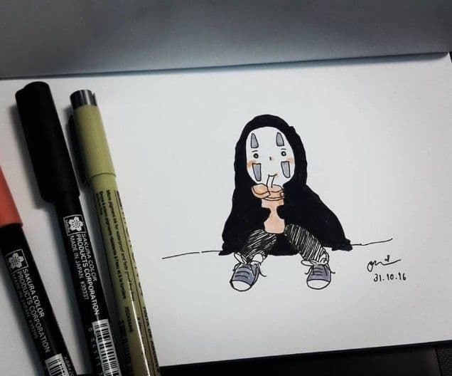 En lo que fue el mejor fan-art hasta el momento, Momo Lu se encuentra con el verdadero Noh-face; su expresión de Saitama ( One Punch Man) lo dice todo...