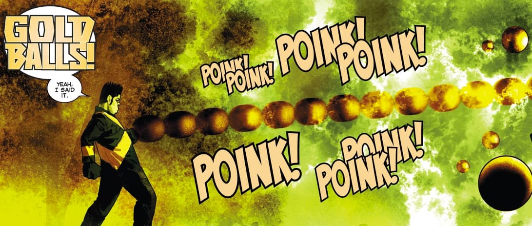 No lo tomes como un doble sentido. Bueno, eso es difícil de pedir cuando el nombre de este mutante es literalmente Bolas de Oro. Fabio Medina es capaz de expulsar bolas doradas de su cuerpo. A la velocidad que quiera y del tamaño que quiera. Es decir, podría convertirse en una ametralladora humana. Eso hubiera estado excelente, pero Medina es un tonto. Lo que sucede en realidad es que Goldballs es muy malo para controlar el poder, sudando bolitas de oro cada que estaba nervioso o triste. Tampoco era una persona muy madura, gritando "¡Goldballs!" (¡Bolas de Oro!) cada vez que usaba el poder. Sí, para no tomárselo en serio.