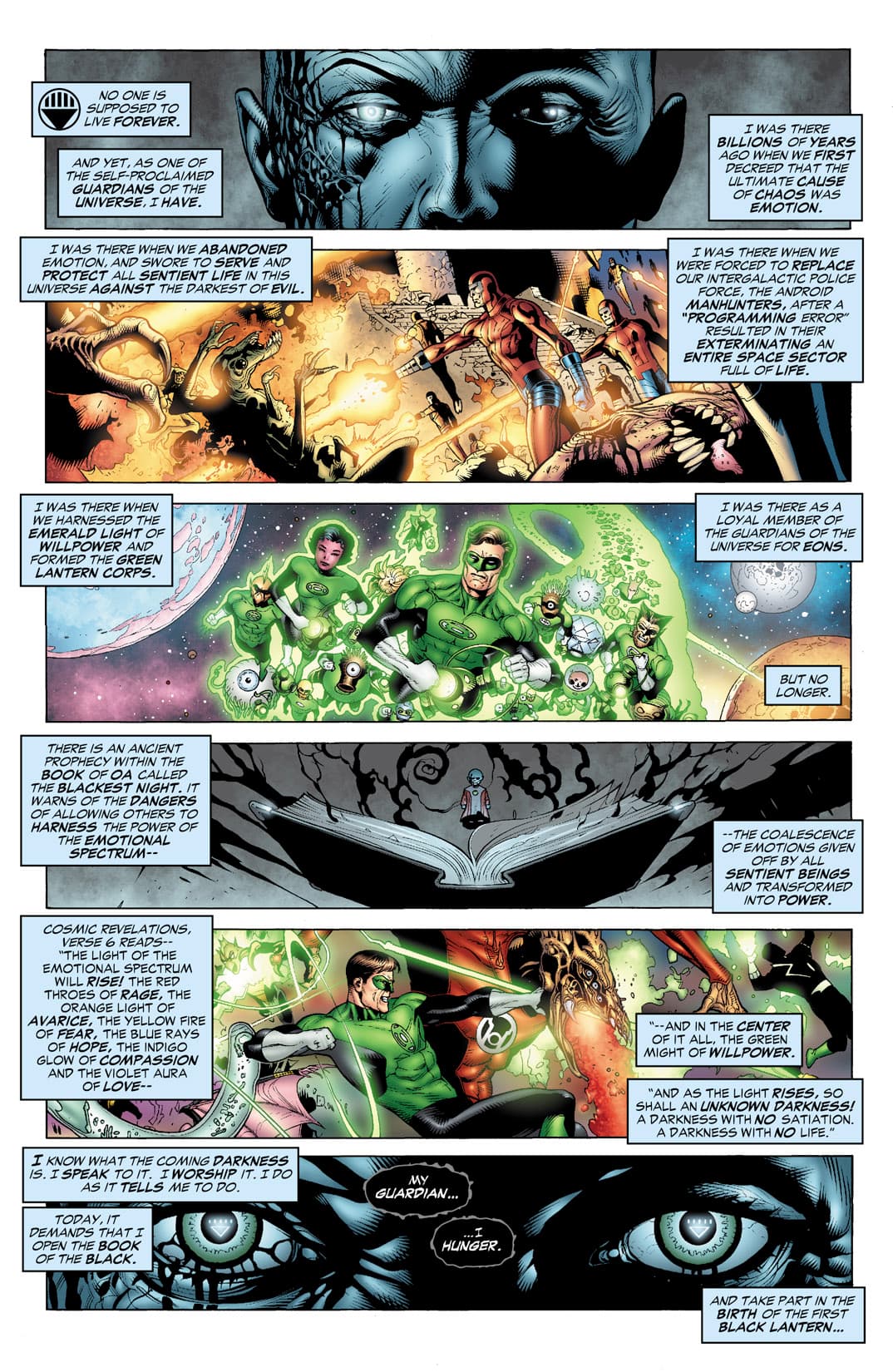 Mientras Hal Jordan y los demás Green Lantern Corps se preparan para una guerra que cambiará al universo, el origen secreto del primer Black Lantern es revelado.