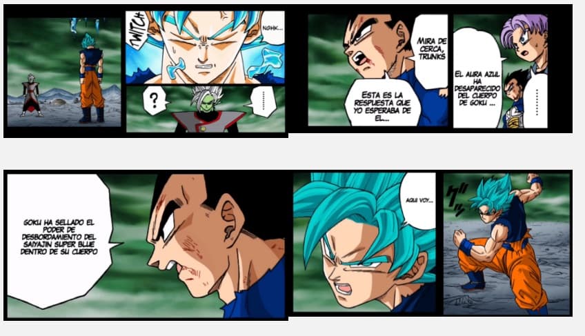 Luego de entrenar por unos meses con Wiss, Goku y Vegeta aprendieron como controlar sus poderes en fase Dios para obtener una transformación aún más fuerte. Esta es el súper saiyajin blue.