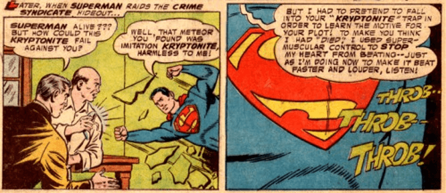 Al parecer, Superman es tan habilidoso controlando su propio cuerpo que es capaz de dominar hasta los latidos de su corazón para hacerlos lo más indetectables posible. Asimismo, es capaz de realizar lo contrario, haciendo a sus latidos tan ruidosos que pueden ser escuchados por todos.