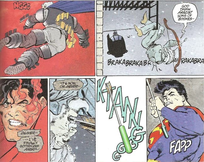 Es importante mencionar que no fue técnicamente una victoria 1 vs 1, ya que en el plan de Bruce existió un tercero, quien fue pieza clave para el desenlace de la historia, lanzando una flecha especial de Kryptonita.
