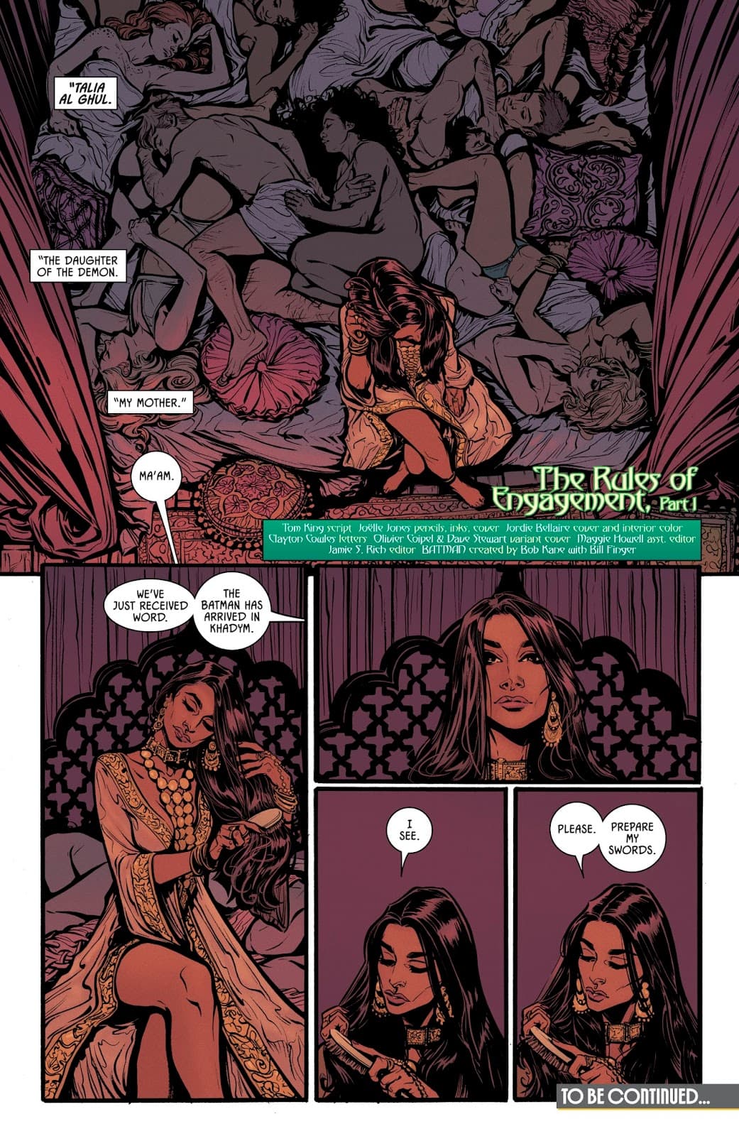 El cómic termina allí y nos deja con una gran interrogante: ¿qué es lo que pretende Batman al enfrentar a su ex, junto a su prometida? Si analizamos el título del issue ('las reglas del compromiso'), es posible que Bruce y Talia tengan un acuerdo legal que podría llegar a impedir el futuro matrimonio, o eso es lo que supongo. Pero tú, ¿qué piensas al respecto?