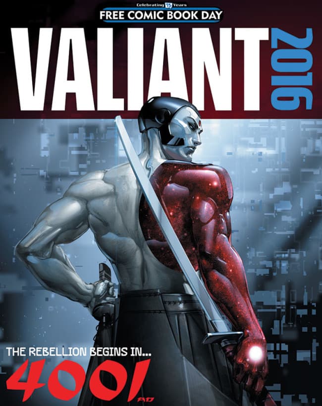 Trae este año un título llamado Valiant 4001 A.D. Special FCBD 2016 Edition. La portada dice que la rebelión comenzará. Se puede ver una especie de samurai robot. Esta compañía no decepciona, por lo cual sería buena idea considerar este cómic como una prioridad.