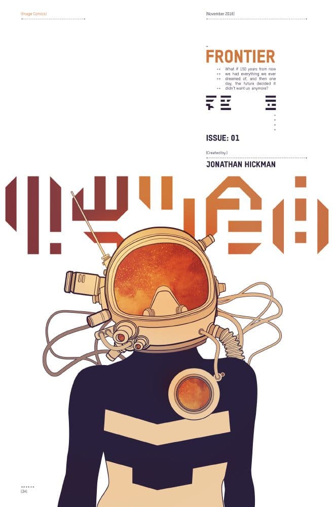 Peores campañas publicitarias han tenido más éxito, así que no creemos que la gente de Image Comics se haya preocupado mucho cuando se enteró que Jonathan Hickman describió a su próximo proyecto como una historia que es “ Como Star Trek, pero súper deprimente.” Pocos días atrás ocurrió el lanzamiento mundial de Star Trek: Beyond y el éxito de la tercera película de la saga, a cargo del director Justin Lin y protagonizada Chris Pine, Simon Pegg e Idris Elba, sacó de las sombras al escritor norteamericano que decidió hablar un poco sobre su futura opera espacial, Frontier.