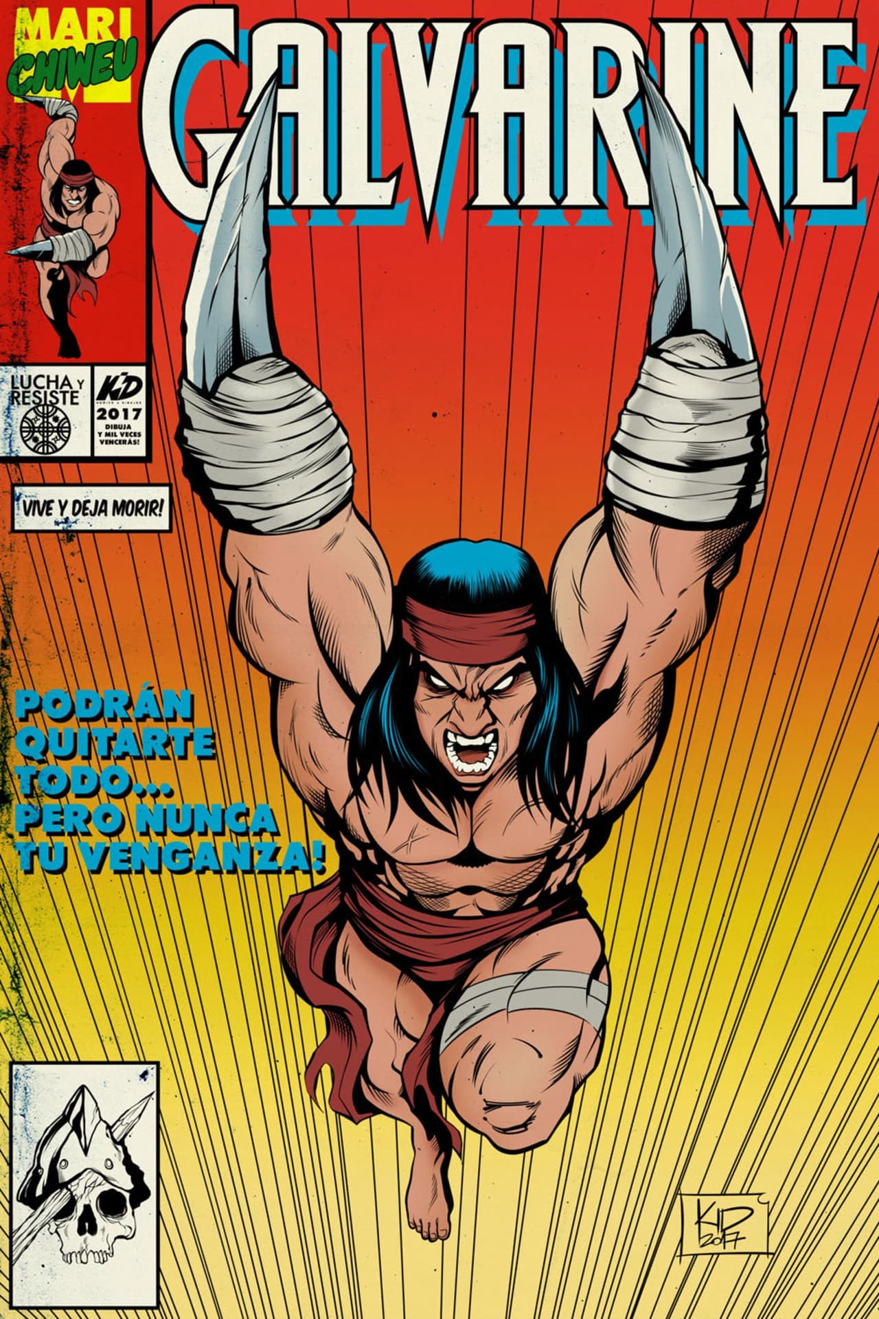Inspirado en esta historia, Guido Salinas creó una portada parodia en la que el protagonista era Galvarino en lugar de Wolverine, llamándole Galvarine.