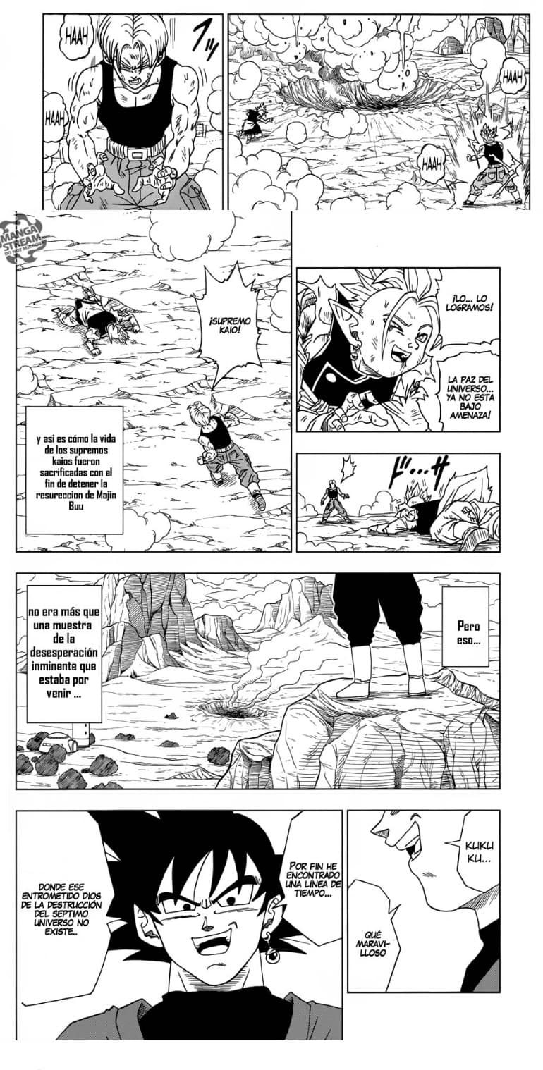 Ahí tenemos la razón por la que Goku Black apareció en el futuro de Trunks y no en otro. En el anime sólo se explicó que Zamasu y Black viajaron para asesinar a los dioses y así eliminar a la humanidad, pero nada más específico.