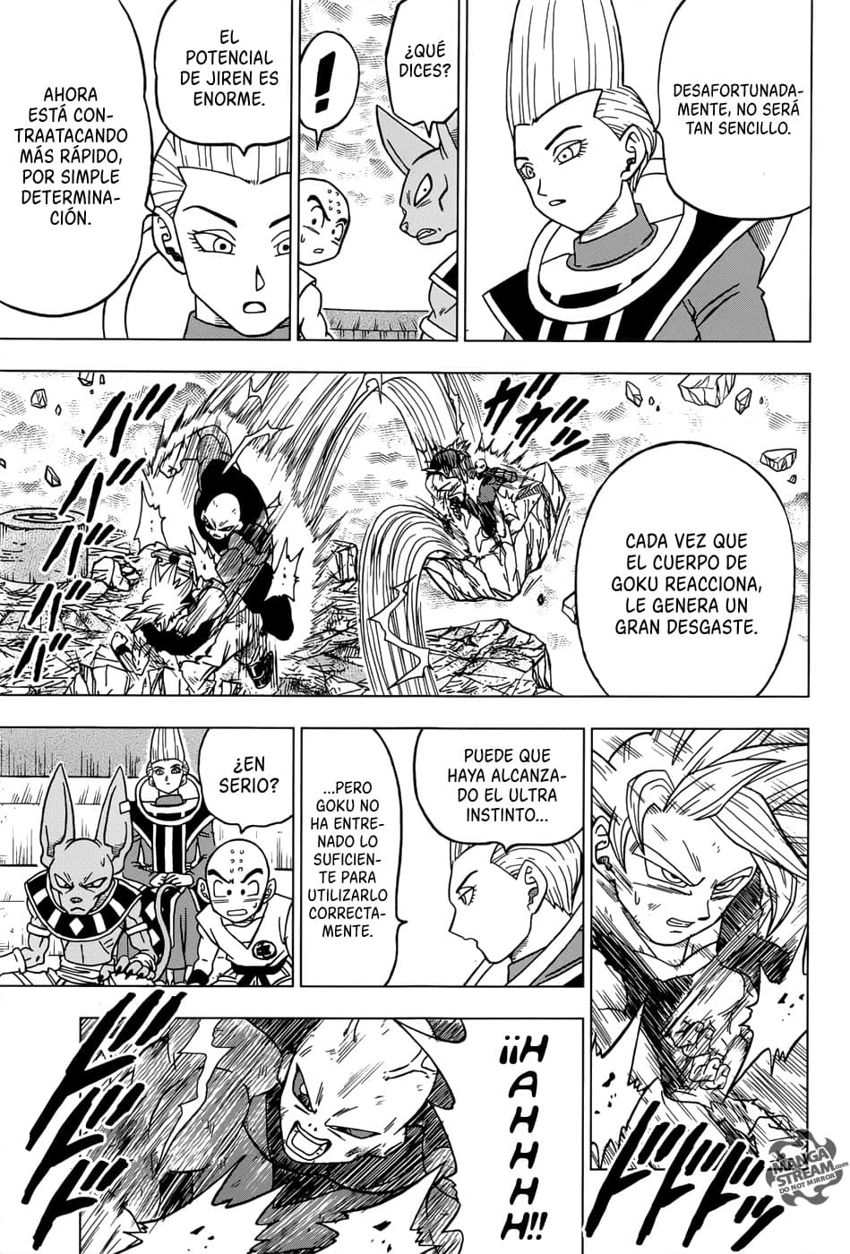 En el manga, Goku liberó el Ultra Instinto y peleó contra Jiren a la par; pero al no estar acostumbrado a esta nueva técnica, se agotó y perdió el estado de los dioses.