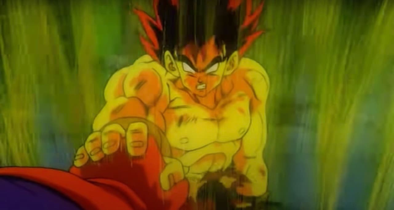 Cuando llega a la zona de batalla, el saiyajin protagonista es controlado por Lord Slug y descubre una nueva transformación en la que su cabello se vuelva rojo y desaparecen sus pupilas.