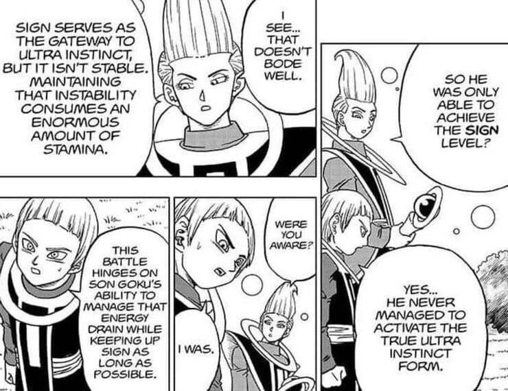 La publicación explicó que la forma de Goku en realidad se llama nivel Sign, la cual consume una gran cantidad de energía; sin embargo, el saiyajin nunca pudo activar el Ultra Instinto en su máxima forma.