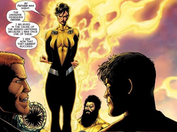 Puede que Sinestro esté fuera de la ecuación pero por supuesto no sus famosos Yellow Lanterns, que recientemente pasaron a llamarse Sinestro Corps. Como todos los seguidores del book Hal Jordan and the Green Lantern Corps saben, una alianza se entabló entre Green y Yellow Lanterns, los últimos a cargo de Soranik Natu, hija de Sinestro.