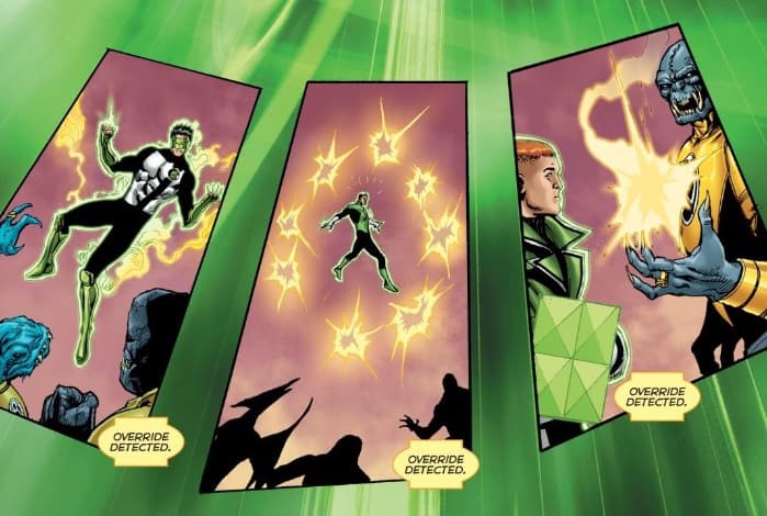 La alianza se derribó en cuestión de horas, y Green y Yellow Lanterns volvieron a la normalidad: querer asesinarse entre ellos. Por suerte, John Stewart sabía que esto podía pasar y tenía una solución al alcance de las manos. Cuando los Green Lantern Corps ayudaron a reconstruir a sus camaradas amarillos fabricando una nueva batería, Stewart colocó un seguro que le permitía desactivarla si algo malo ocurría. En cuestión de minutos, John pudo apagar la batería y todos los anillos amarillos perdieron sus poderes.