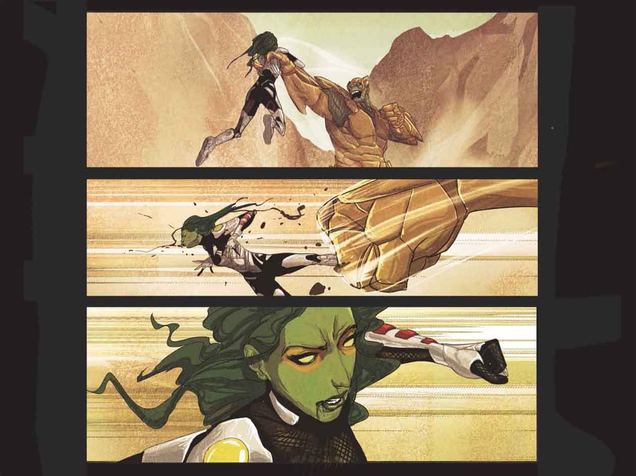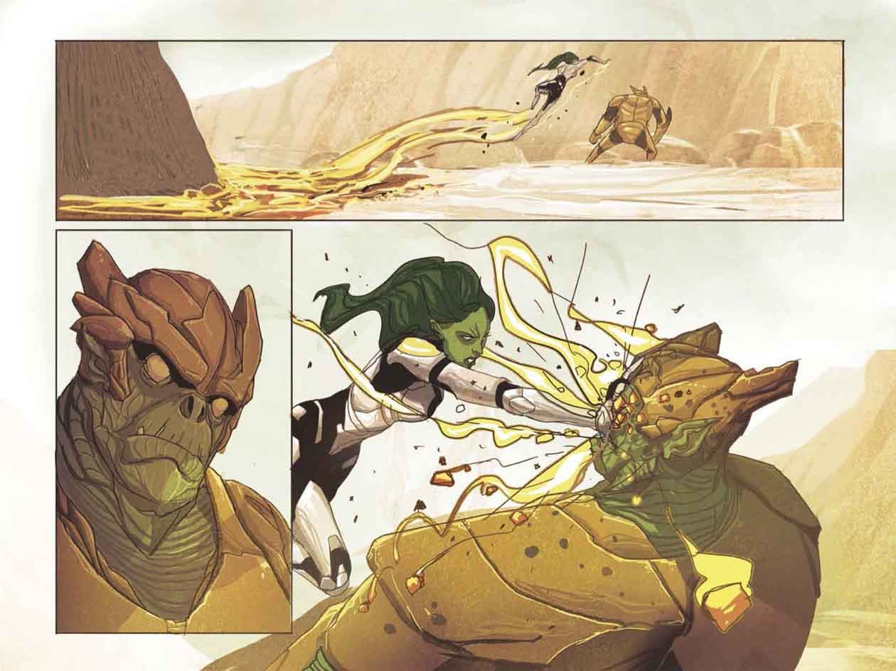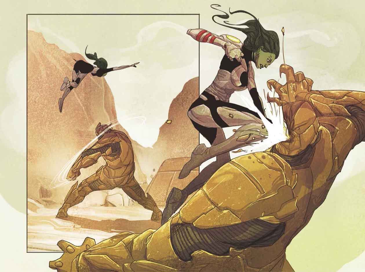 Además de estos cómics dedicados a Drax y Rocket Raccoon, los próximos lanzamientos de Guardians of the Galaxy Infinte Comic estarán dedicados a Gamora y Groot, creaciones de Brian Michael Bendis, acompañado de Mike Oeming, Ming Doyle y Mike Del Mundo. El primero de ellos, Gomora, estará disponible a partir del 3 de abril, y gracias a Marvel Entertainment tenemos algunas imágenes de adelanto, presentándonos al personaje de Gamora.