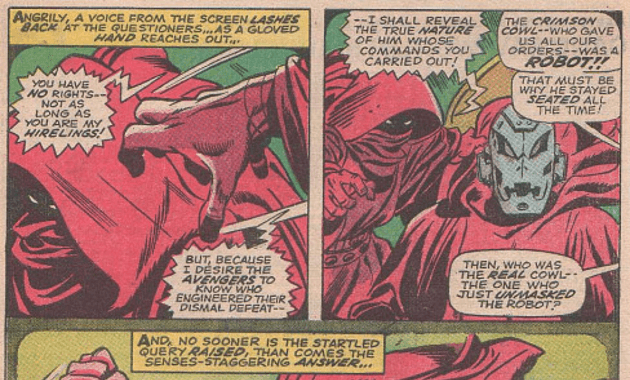 La capa roja que utiliza Ultron en su entrada a Sokovia es una clara referencia al alias de Crimson Cowl, una identidad secreta que utilizaba el robot en sus primeros cómics.