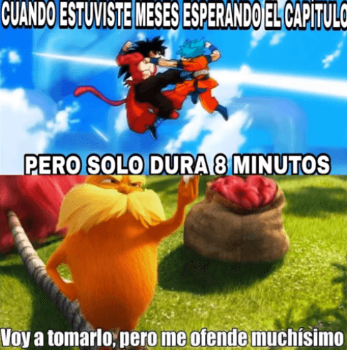 Luego de una larga espera, el primer episodio de Dragon Ball Heroes fue estrenado. Lamentablemente, no superó las altas expectativas del público, el cual esperaba un episodio de duración normal y se encontró con 8 minutos —ya sabes que cuánto dures habla mucho de la calidad de tu trabajo *wink wink*—.
