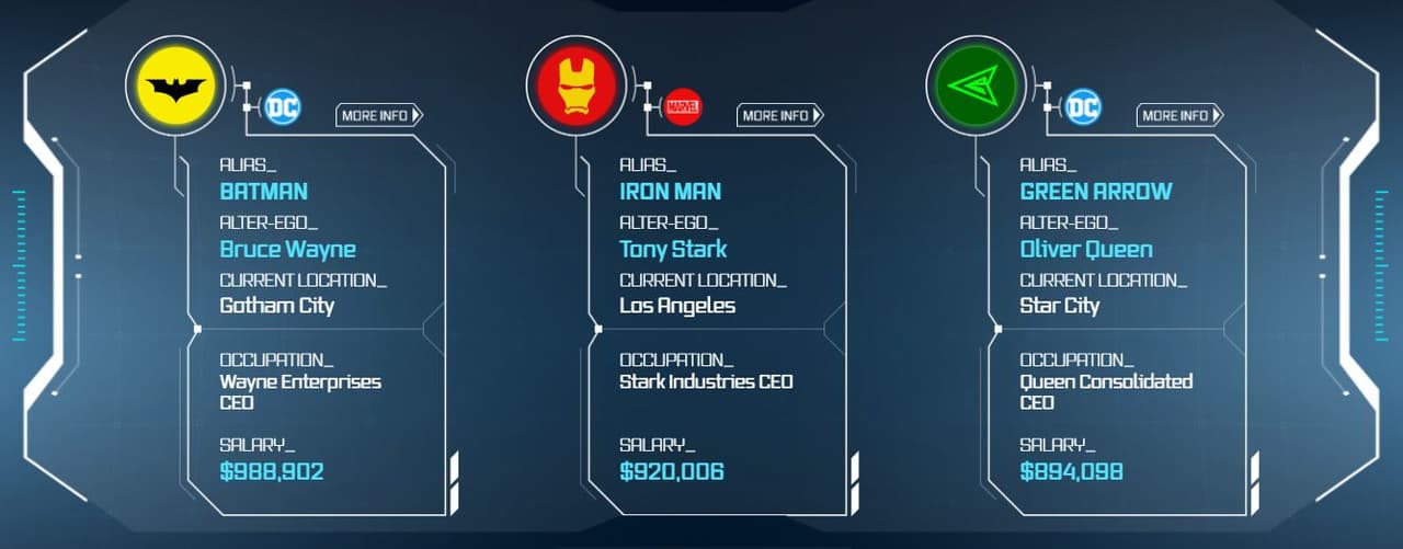 Esta lista se diferencia de la que saca Forbes porque aquí se toma en cuenta la ocupación, así que T'Challa queda fuera porque él es un rey y no recibe un salario por su trabajo; en cambio Tony Stark y Bruce Wayne sí forman parte de su compañía como CEOs.