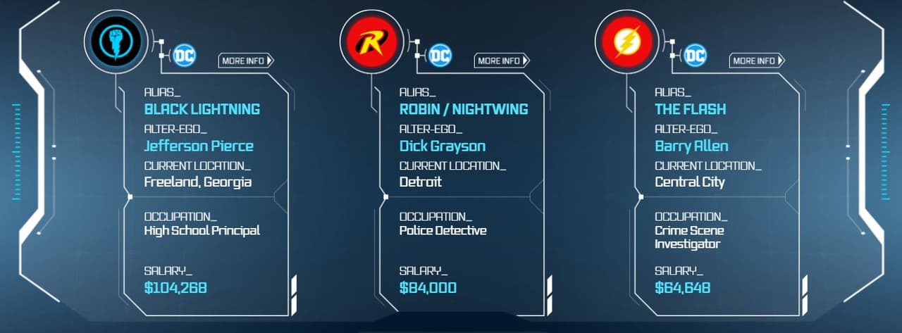 Por su parte, Dick Grayson (Robin) obtiene con 84 mil billetes norteamericanos como investigador privado, mientras que Barry Allen (The Flash) percibe 64 mil por su trabajo como perito.