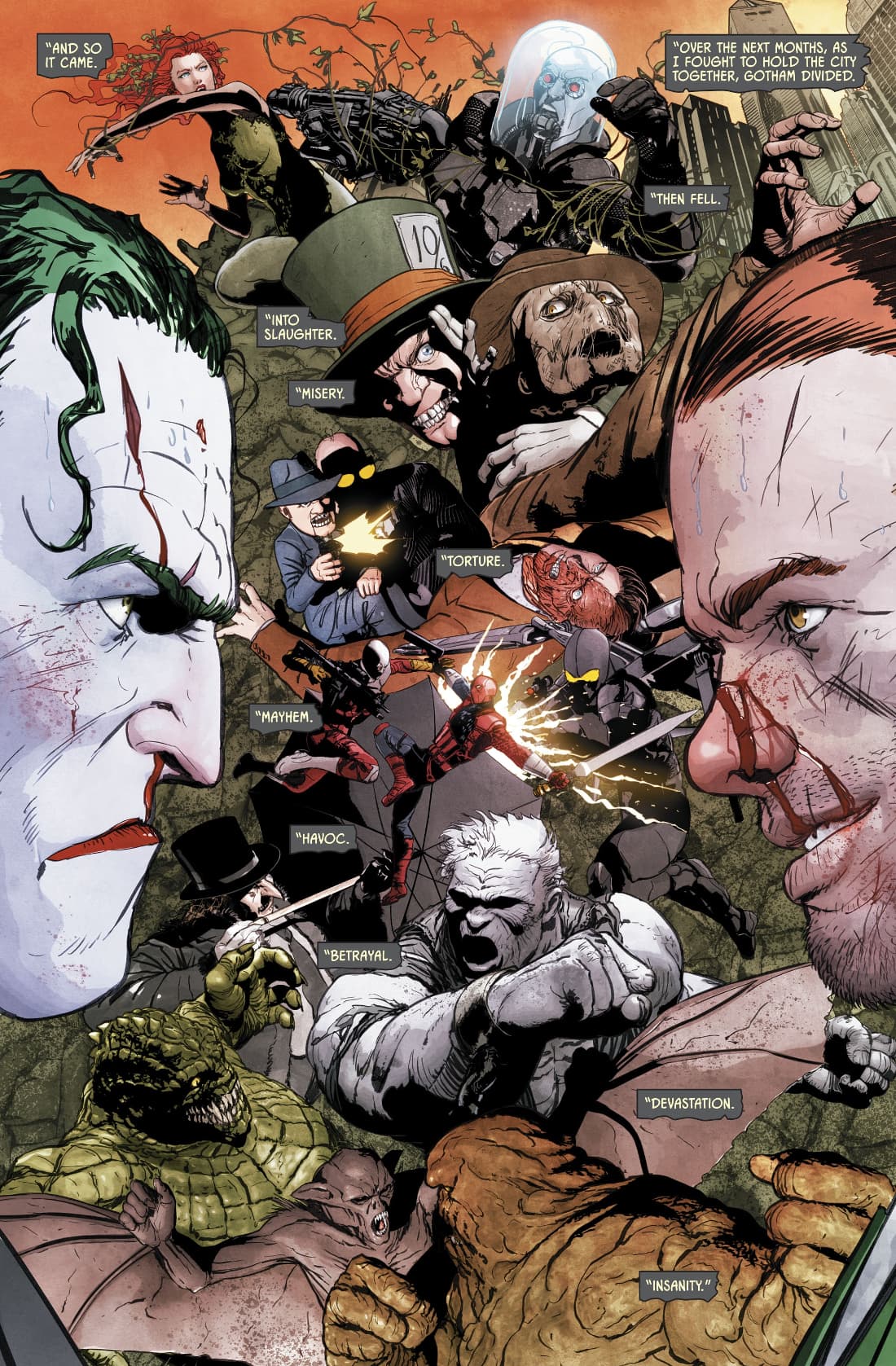En primer lugar, resalta la presencia de Joker. Y si bien ya habían aparecido otros Joker —el Joker asesinado por Harley Quinn, y el visto en el cómic introductorio de Dark Nights: Metal—, las anteriores versiones no se asemejaban a este Joker, en absoluto. Algo que, aparentemente, corrobora la premisa inicial de Rebirth sobre la existencia de tres Jokers —teoría que trataremos en otro artículo.