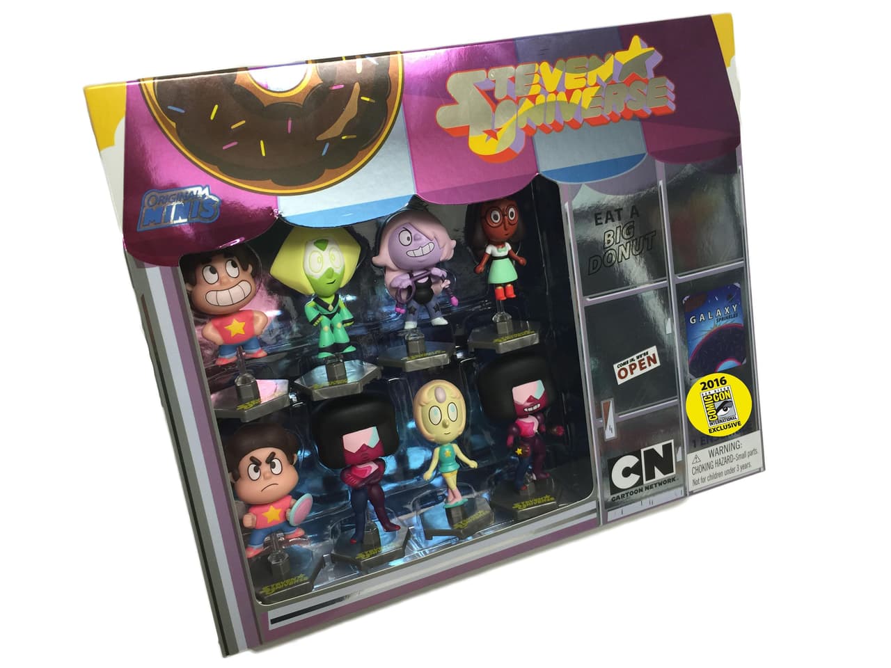 Steven Universe se encuentra a pocos días de estrenar su cuarta temporada y llega al formato de las figuras de acción por primera vez desde su inicio en 2013. Zag Toys y Cartoon Network traen este set que incluye mini-figuras del show que se convirtió en unos de los más exitosos para CN en los últimos años. Los personajes incluidos son: dos versiones de Steven (una alegre y una listo para la batalla), dos versiones de Garnets (una alegre, una seria), Pearl, Connie, Amethyst y Peridot. El set fue totalmente exclusivo de Comic-Con y costaba $29,99 dólares.