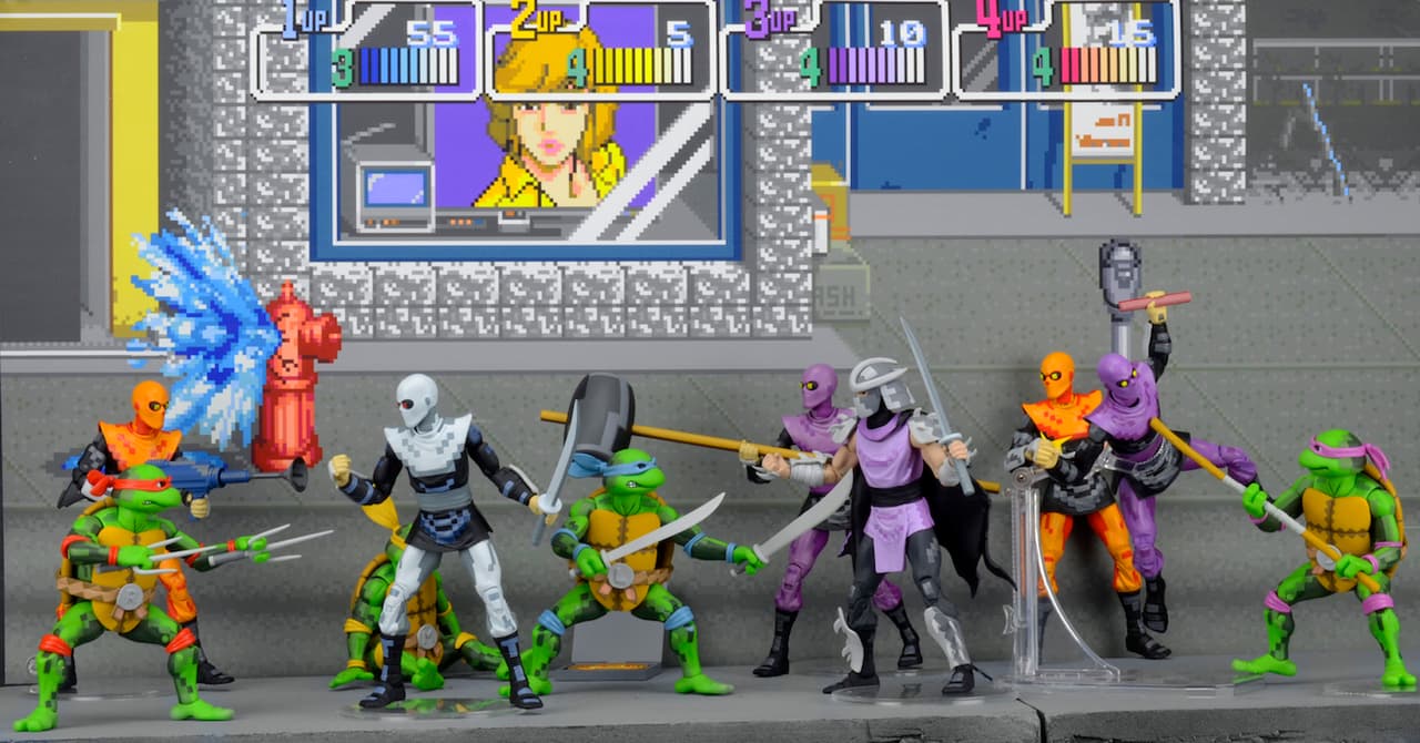 Se trata de dos sets de figuras de acción (cada uno con 5 personajes, completos con accesorios) que representan a la perfección la aparición de las tortugas en el mundo de los arcades a principios de los 90. El videojuego original fue desarrollado por Konami y permitía el uso de los 4 protagonistas que batallaban villanos en las calles de New York. Completos con pintura que incluye los píxeles, estas figuras de acción fabricadas por NECA no serán vendidas nunca por fuera de la convención (por parte de la empresa, por supuesto) y cada set costaba $100 dólares.